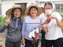 春に植えたさつまいもを皆さんで収穫しました。 皆さん一生懸命に掘られていました。 カゴいっぱいのさつまいもを見て大盛り上がり! 「何して食べるんがええかな~、焼き芋か天ぷらかな~」 何にしましょうか?...