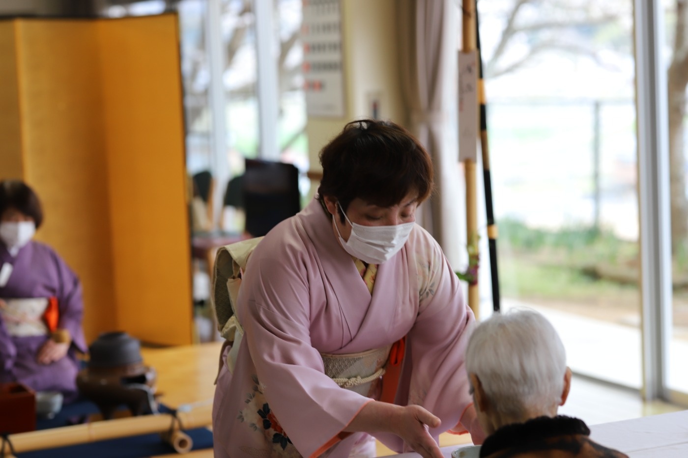 2025.04.16 春爛漫 4月1日にお花見行事とお花見茶会を開きました。 毎年桜の花があるかな?と心配してましたが、今年はお天気に恵まれ最高の花見となりました。 お花見茶会には職員も着物に着替え、理事長ご夫婦、施設長とパチリ。 普段と違い、おしとやかに見えるかな?!( *´艸`)