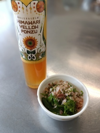 まんのう町特産の「黄色いひまわりぽん酢 HIMAWARI YELLOW PONZU」を使って作りました。