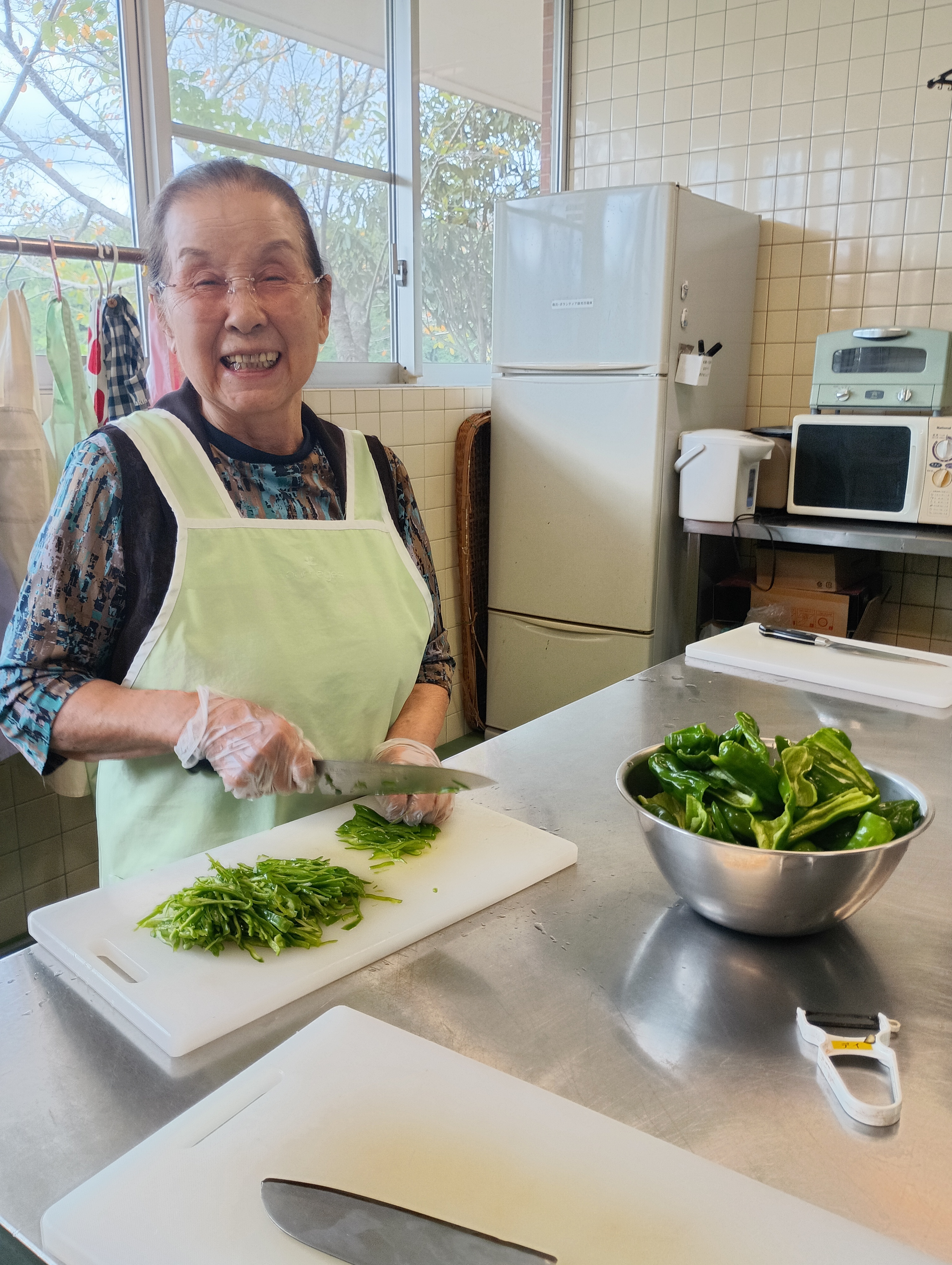デイサービスでたくさん収穫できたピーマンを使って、おかか和えを作りました(⌒∇⌒)