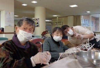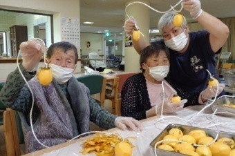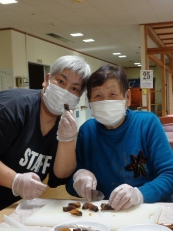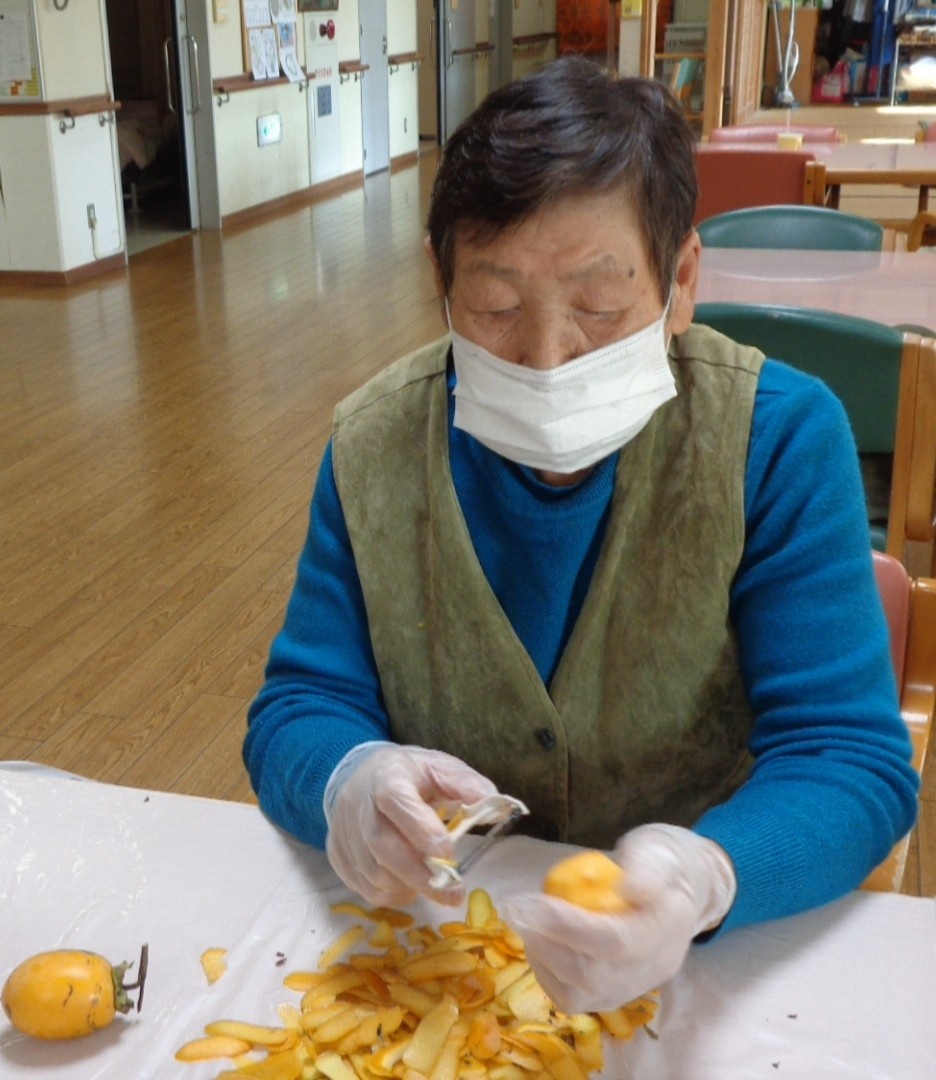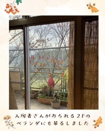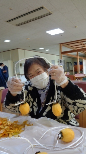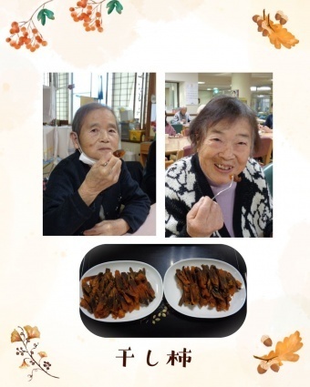 2025.12.09 干し柿 デイサービスで、干し柿を作りました。 皆さんでおしゃべりしながらするとあっという間にできました。 干しているのを見て「干し柿やなぁ。」「いつ食べれるん?」と、食べる日を楽しみに眺めてくださっていました。 軟らかいうちに切り分けて、全て美味しくいただきました。 「もう一つちょうだい♡」があちこちで聞こえていました。
