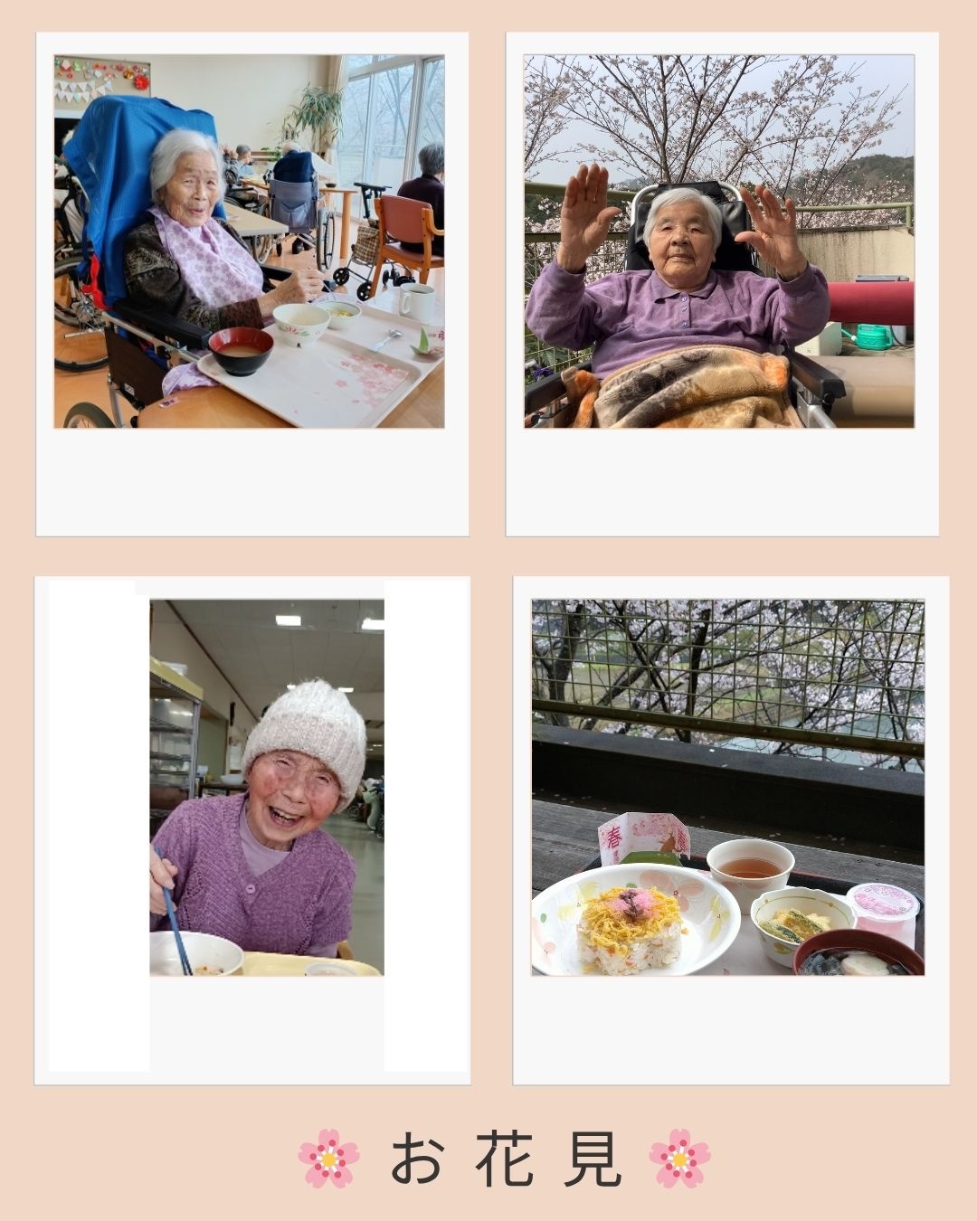 花見会食の日は、あいにく天気には恵まれませんでしたが、ばら寿司にお吸い物など、春を祝う食事をご利用者、職員みんなで美味しくいただきました。