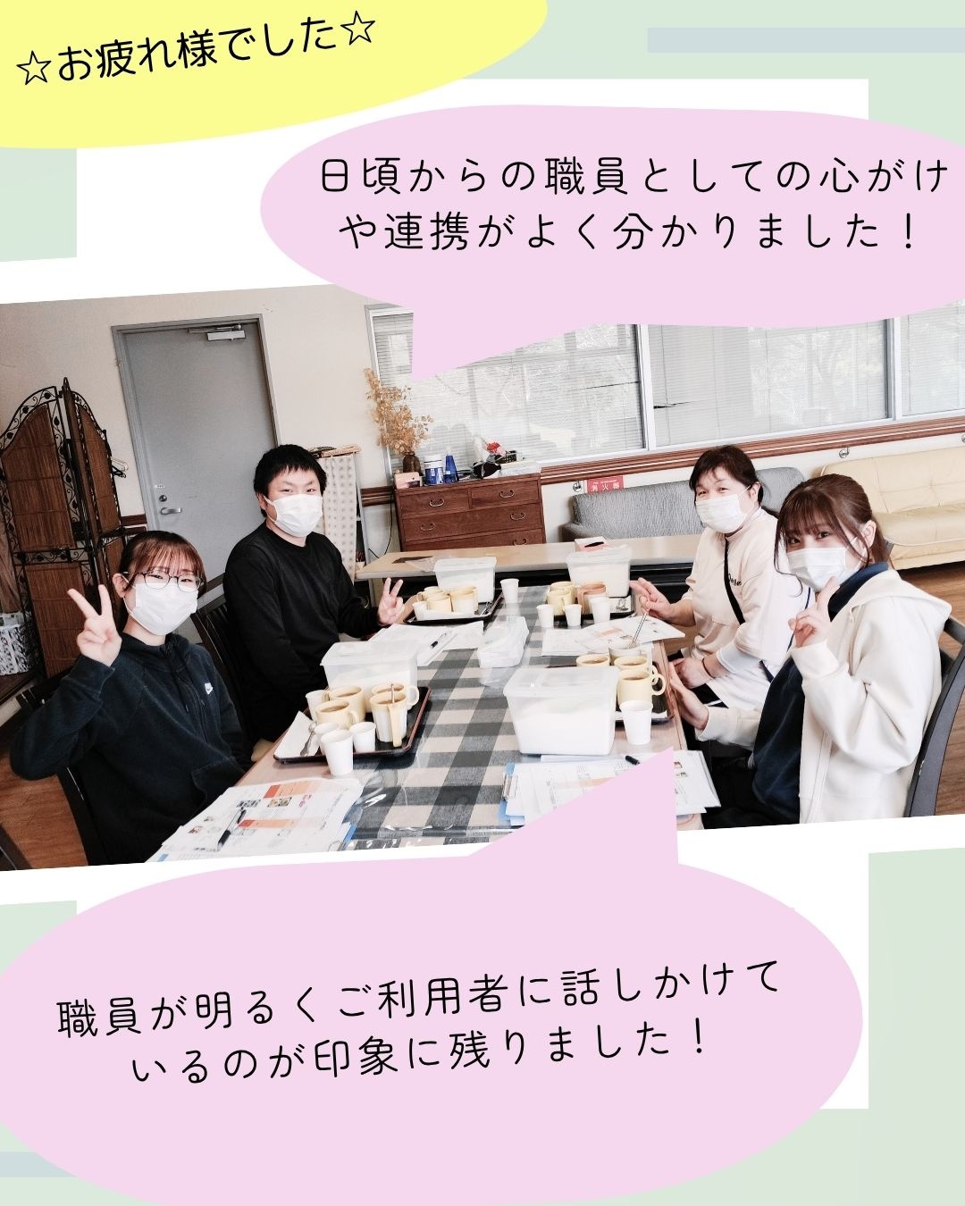 新しく仲間に加わった職員からは「職員同士が信頼し合い、明るく前向きに働く姿が印象的でした」「ご利用者一人ひとりの状態を把握して対応していきたいです」といった感想も寄せられました。