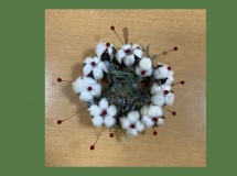 以前ベランダで収穫した綿を、そのままの形を生かしてリースにしてみました。 飾りの付け方は4人のご利用者にお任せして、皆さんに少しずつ付けていってもらいました。 かわいらしい作品ができました☆