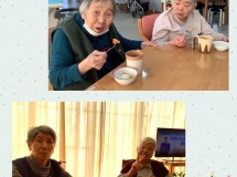 今月の手作りおやつはきな粉飴を作りました。 「なつかしい!紙芝居を観にいったら売っとったんよ」「昔は砂糖が貴重やきんごちそうやったなぁ」「おいしい!あんた、お菓子屋が開けるわ」などお話を聞かせていた...