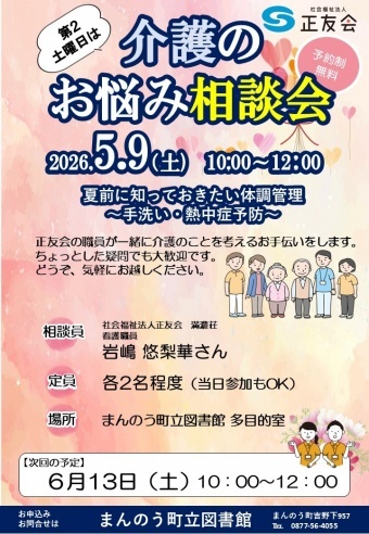 5月9日(土)まんのう町立図書館で“介護のお悩み相談会”を開催します。