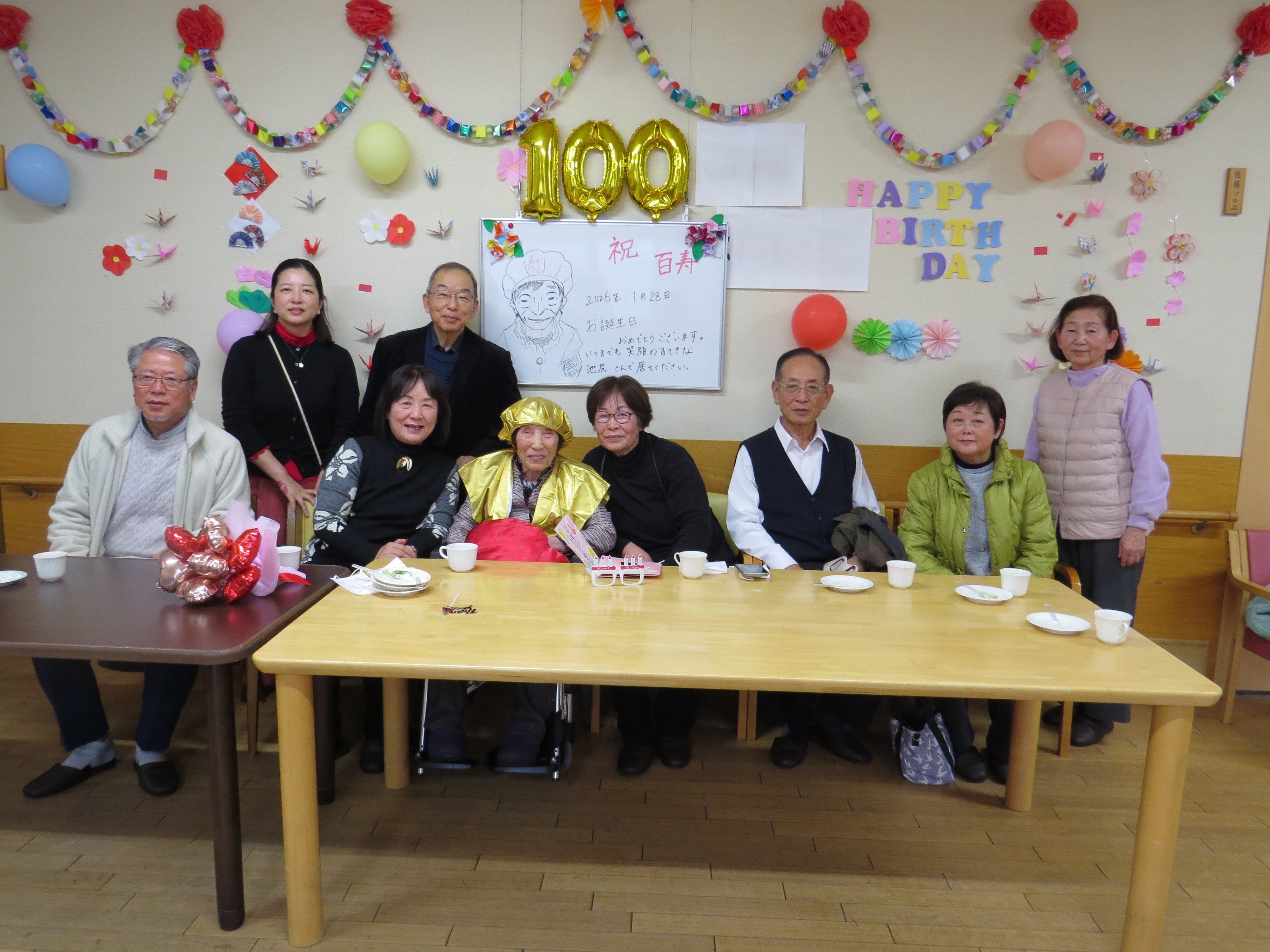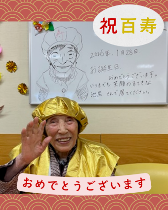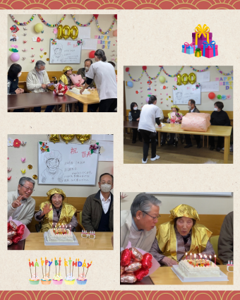 いろどりユニットのご利用者が、1月28日に100歳のお誕生日を迎えられました。