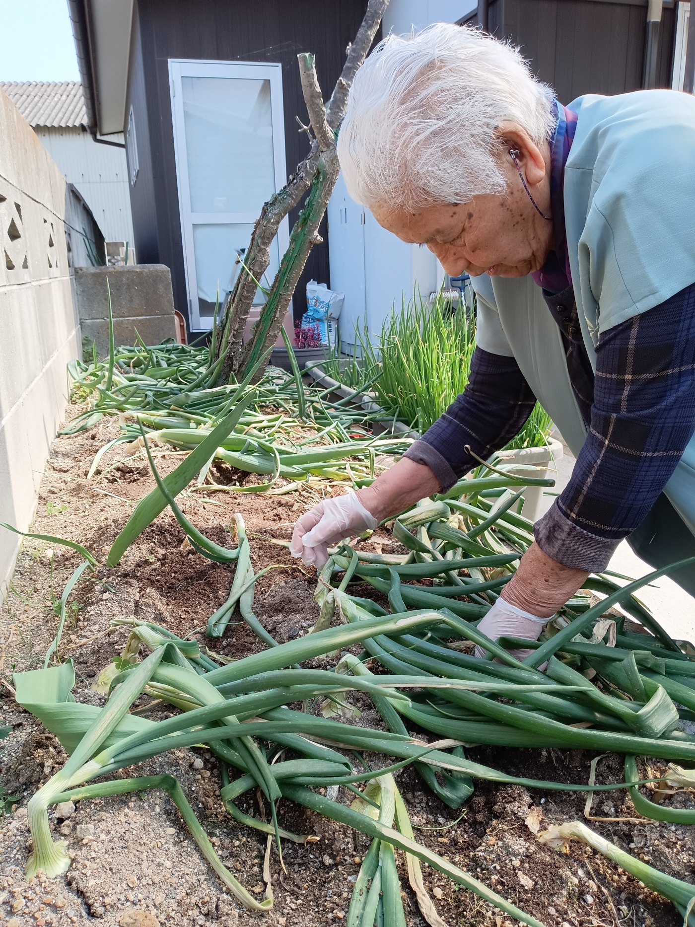 2025.04.15 新玉収穫(^_^) 昨年植えた玉ねぎの収穫時季がやってきました! 小さなおひいさんの畑で、こんなに大きく育ち、たくさんとれました♪ ご利用者もびっくりでした(^_^) 他にも、ほうれん草や春菊も収穫! 新玉サラダやほうれん草の白和え、春菊のゴマ和えを 調理して美味しくいただきます♪