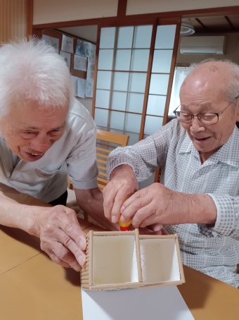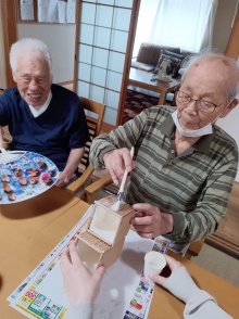 男性ご利用者二名が、ペン立てを作ってくれました!材料は、牛乳パックとストローです(^^♪