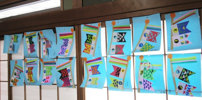 2020.05.05 鯉のぼり おひいさん泳ぐ! 五月の端午の節句にむけて、鯉のぼりを作りました。折り紙を切って、うろこの模様や目も、表情を考えて貼りました。 おひいさんの窓際には、青空と共に、かわいい鯉のぼりがいっぱい、泳ぎました!