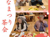 ひなまつり茶会を行いました。 ひな人形やお花を見たり、ひなまつりの曲を聴きながらお抹茶とおまんじゅうを食べました。 ご利用者からは「お抹茶おいしかった。」「おまんじゅう可愛いな。」などの声が聞かれま...