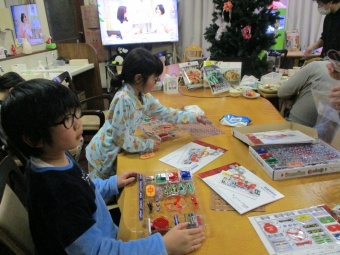 今回メインとなります「プログラミング体験」では、教材を使いスタッフが先生となり行いました。