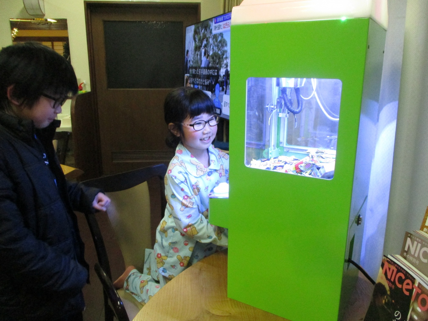 前回よりお菓子UFOキャッチャーは、子供達に大人気です。「ブラックサンダー取ったよ」「2つも取れた」と喜んでいました。